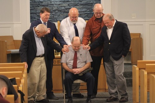 The first elders were appointed in 1971. They were brothers C.B. Russel (1971-1992), Harry Prather (1971-2014), John Parker (1971-2014), Earl Johnston (1971-present), and Alan Bundy (1971-present). Brother Sydney Mayeux served as the first minister until his death in 1962.